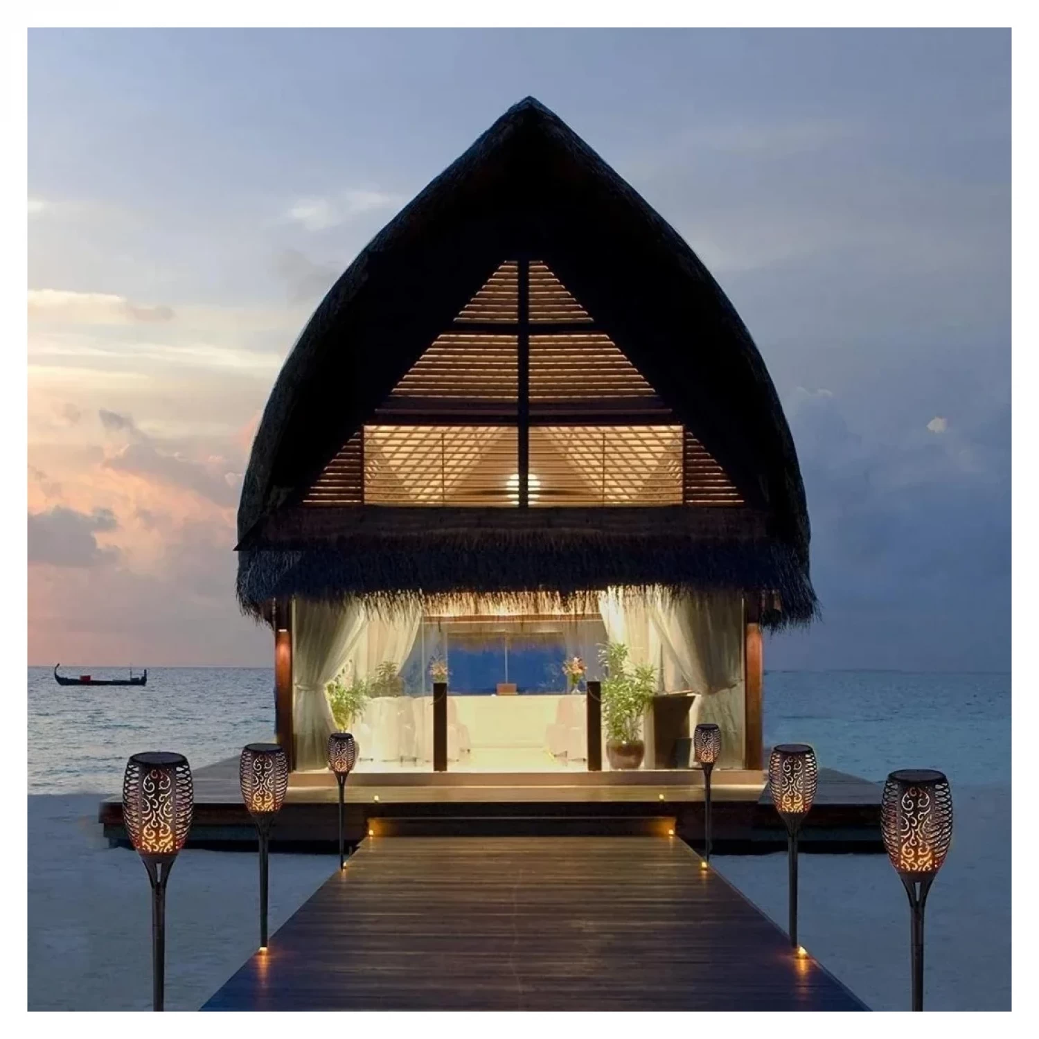 Lampa solara cu efect de flacara este perfecta pentru iluminarea gradinilor, curtilor sau teraselor tale. Efectul de flacara adauga un plus de frumusete si un ambient cald în orice spatiu exterior.